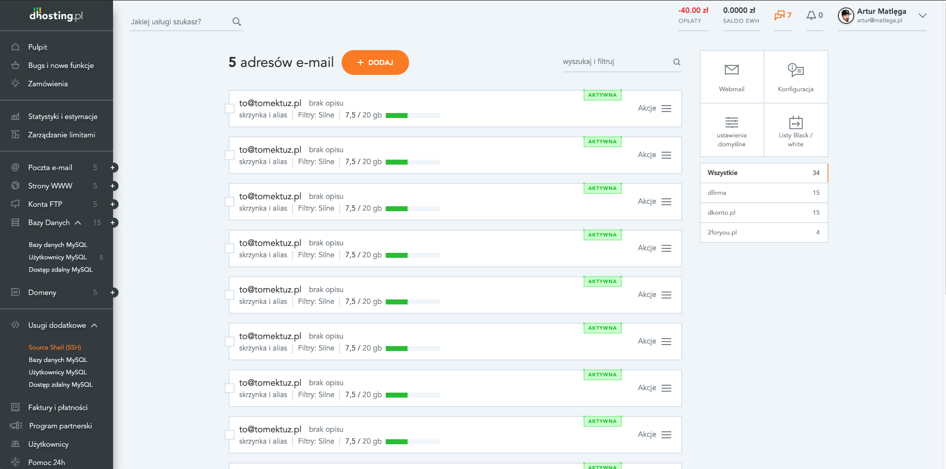 Zobacz autorski panel administracyjny, który tworzyliśmy od podstaw gwarantując sobie i Tobie nieograniczone możliwości dalszego rozwoju. dPanel 3.5 to profesjonalne narzędzie, które scala wszystkie opracowane przez nas rozwiązania i usługi jak chociażby unikatowy Elastyczny Web Hosting. Zarządzaj przejrzystym panelem stworzonym specjalnie dla Ciebie i Twojej usługi.